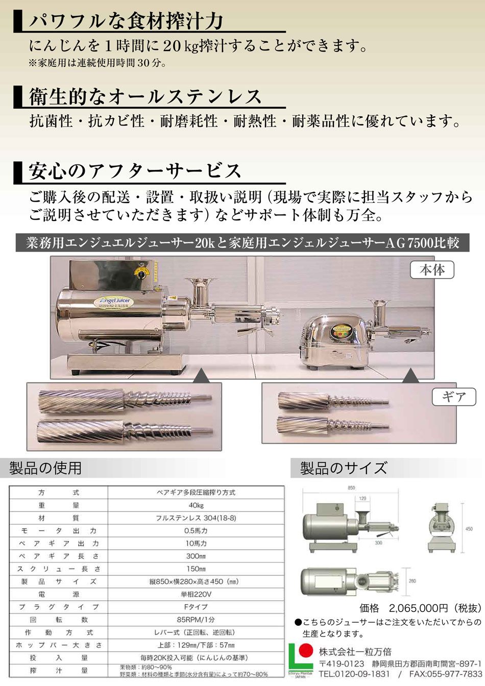 【卸売り専用】業務用コールドプレスジューサー エンジェルジューサー 20K